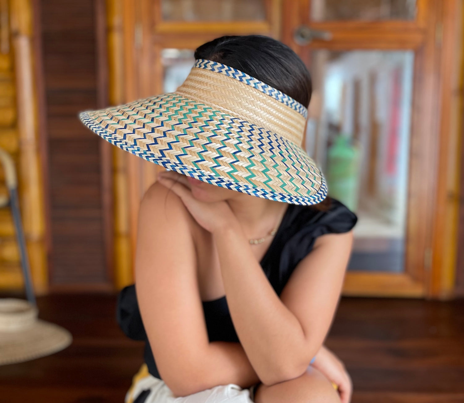 Each visor is crafted in mawisa palm which is cultivated, harvested, and sun-baked in Colombia, where it is then woven by artisans from the Wayuu indigenous community.